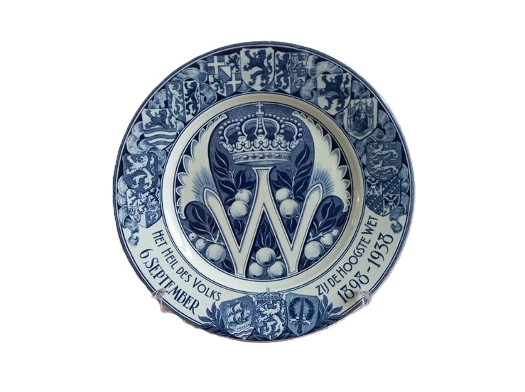 Title | Wandbord ter ere van 40-jarig regeringsjubileum Wilhelmina waarop de gekroonde W |