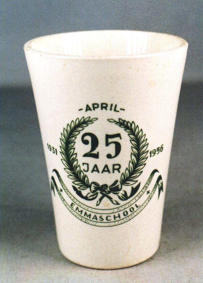 Title | Beker met lauwerkrans waarin 25 JAAR waartussen 1931 1956 waaronder EMMASCHOOL |