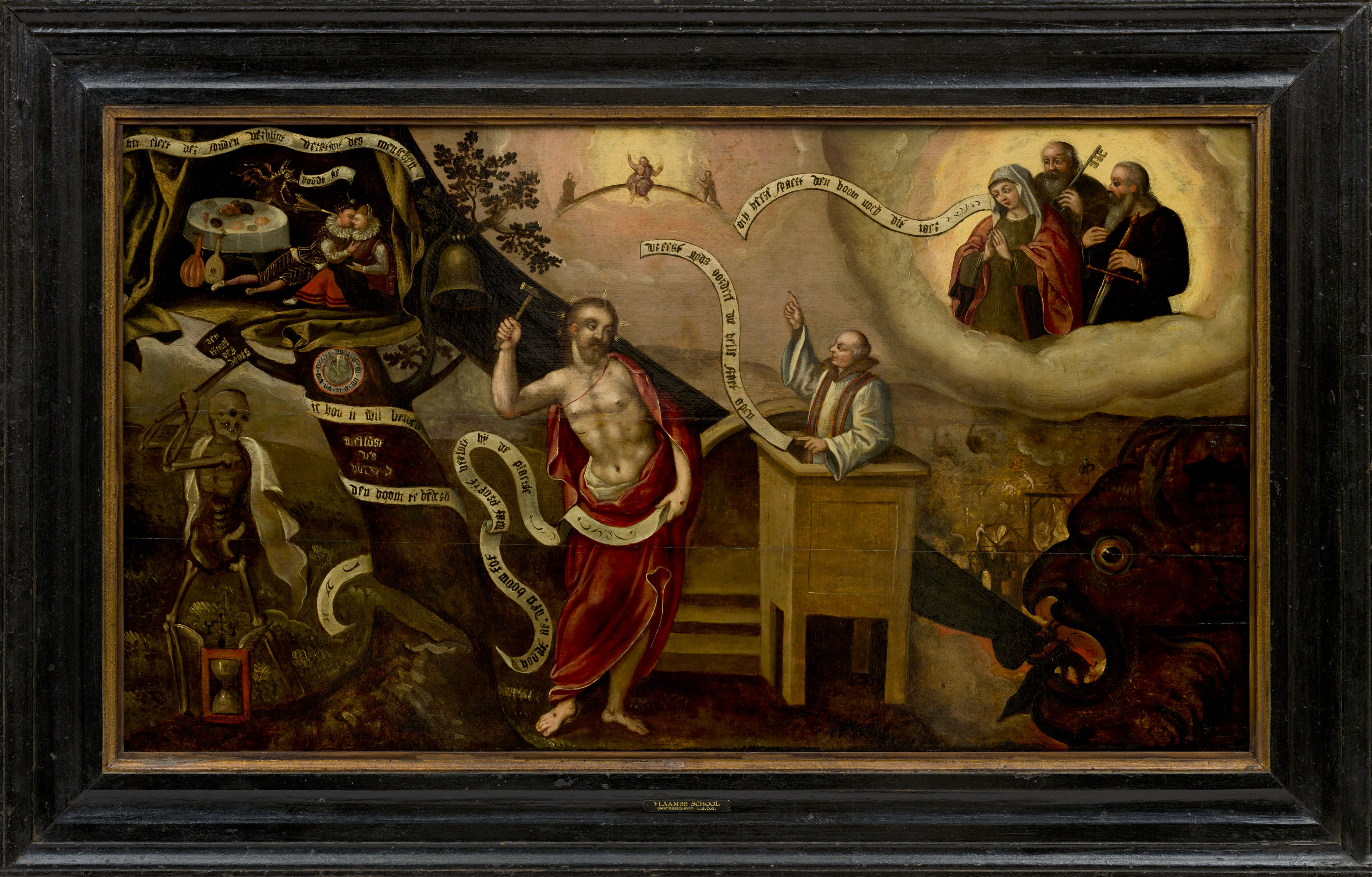 Left: Anonymous artist, Religious Allegorical Depiction, ca. 1600, oil on panel, 84 cm x 133 cm. Collection Bonnefanten, long-term loan Limburgs Geschied- en Oudheidkundig Genootschap.