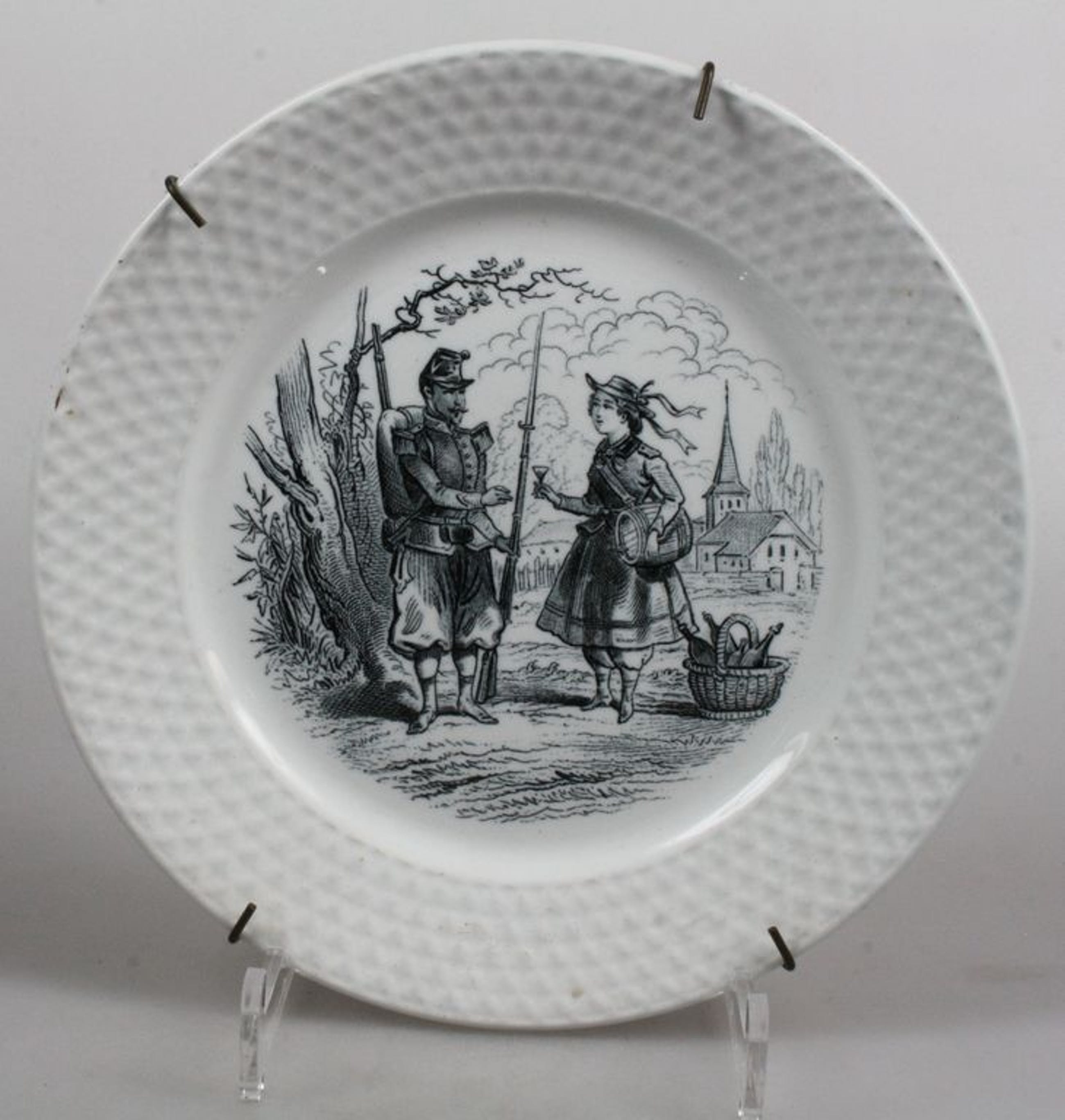 Titel | Bord met wafelrand waarop soldaat en marketenster |