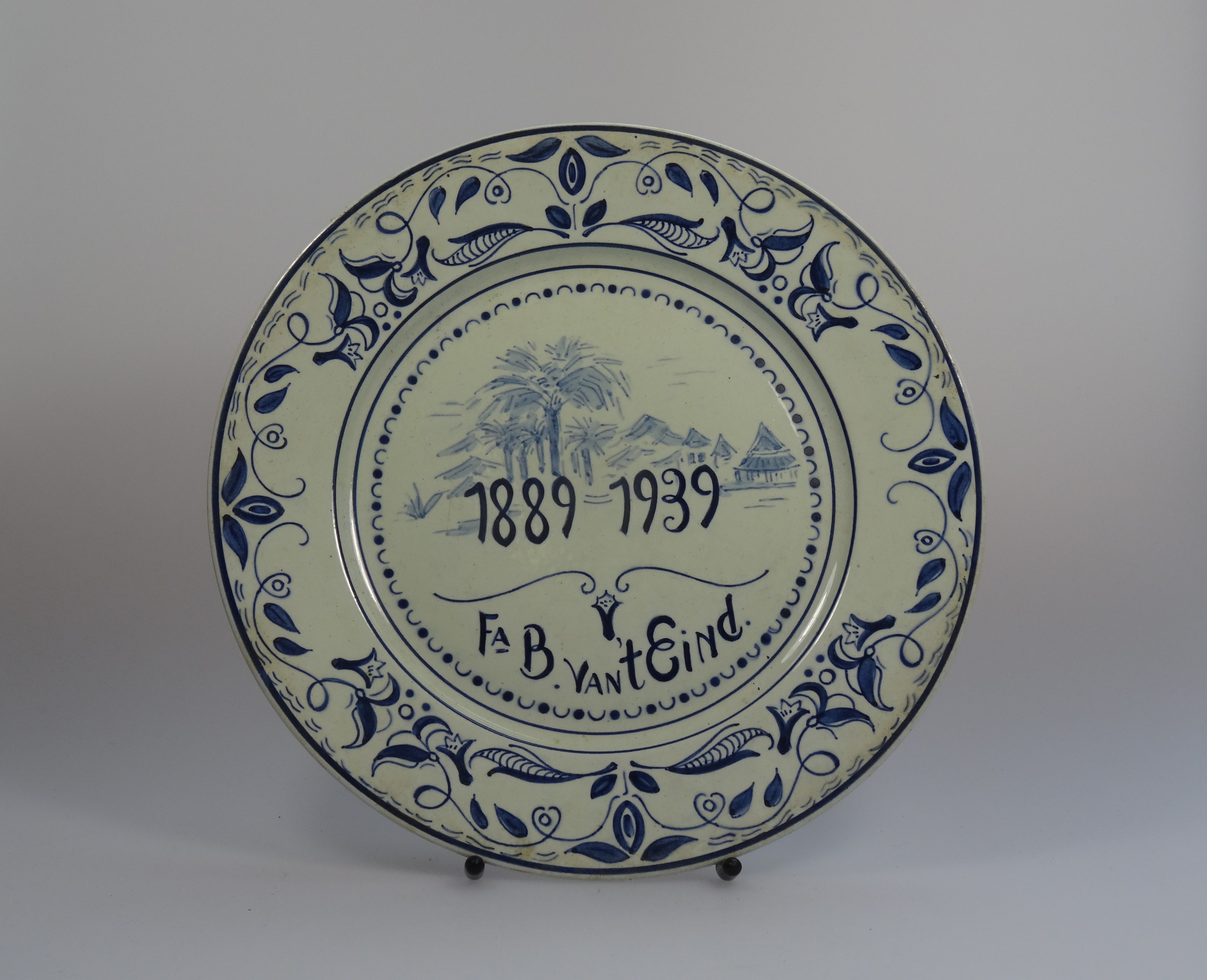 Titel | Wandbord waarop vaas met bloemen "1189-1939 Fa. B. van 't Eind" |