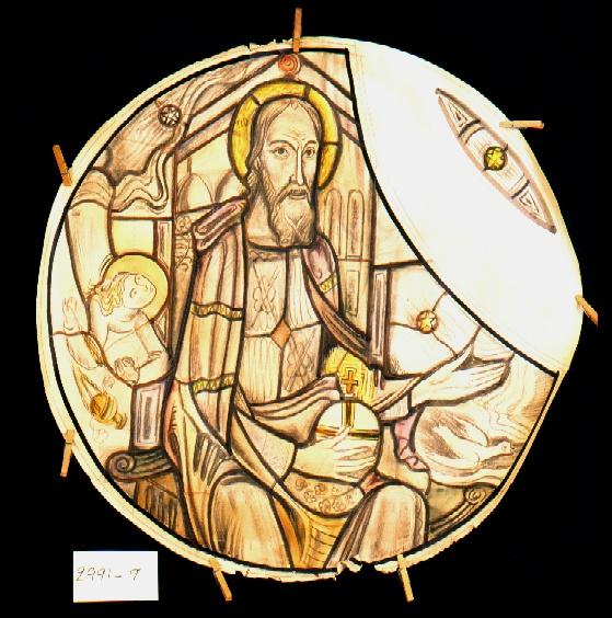 Titel | Ontwerp voor een glas in lood raam ; God de Vader. Waarschijnlijk onderdeel van een heilige drievuldigheid |