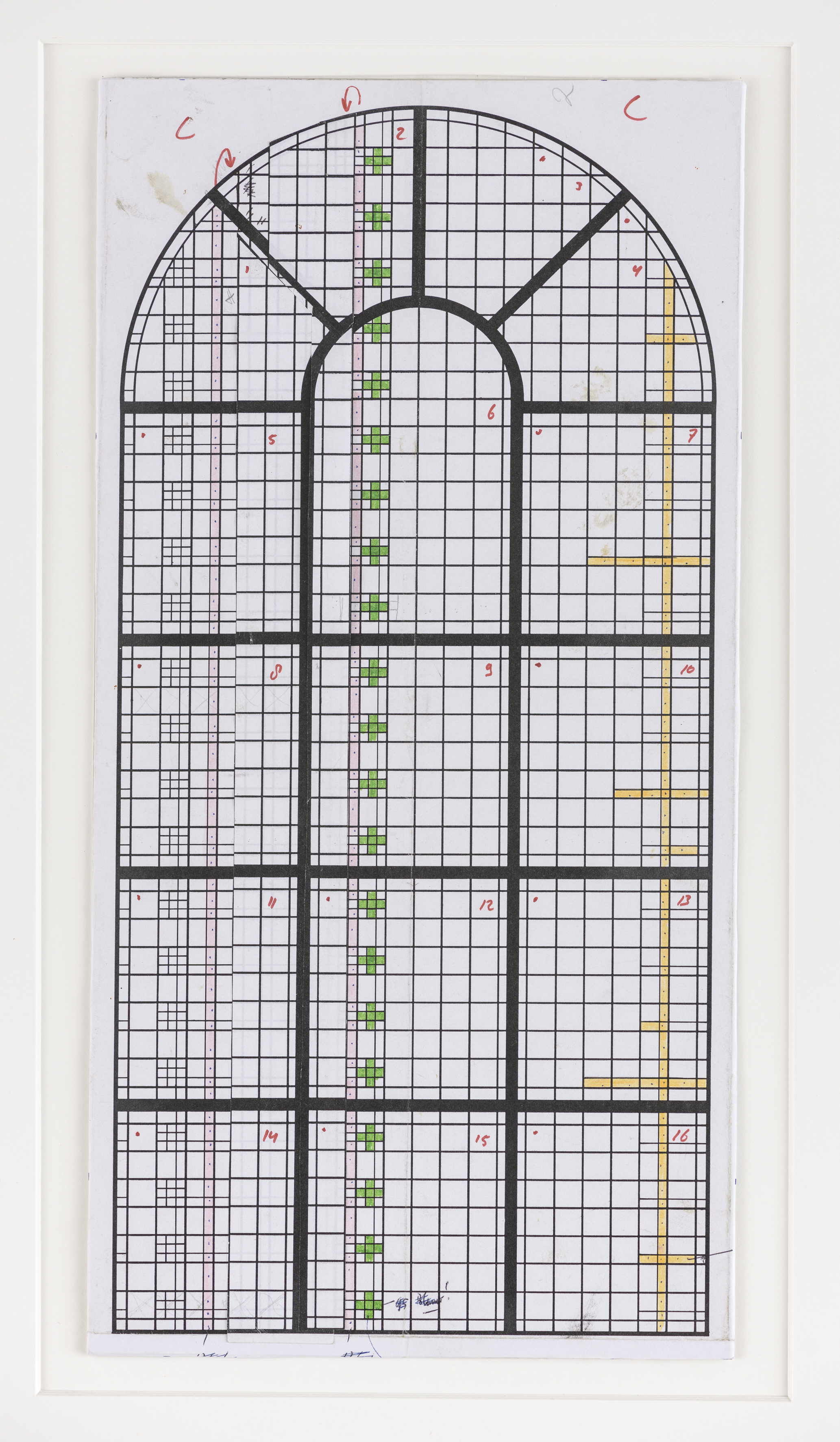 Titel | Definitief ontwerp voor een glas in lood raam voor de Sint Gertrudiskerk te Wijlre ; schip noordzijde |