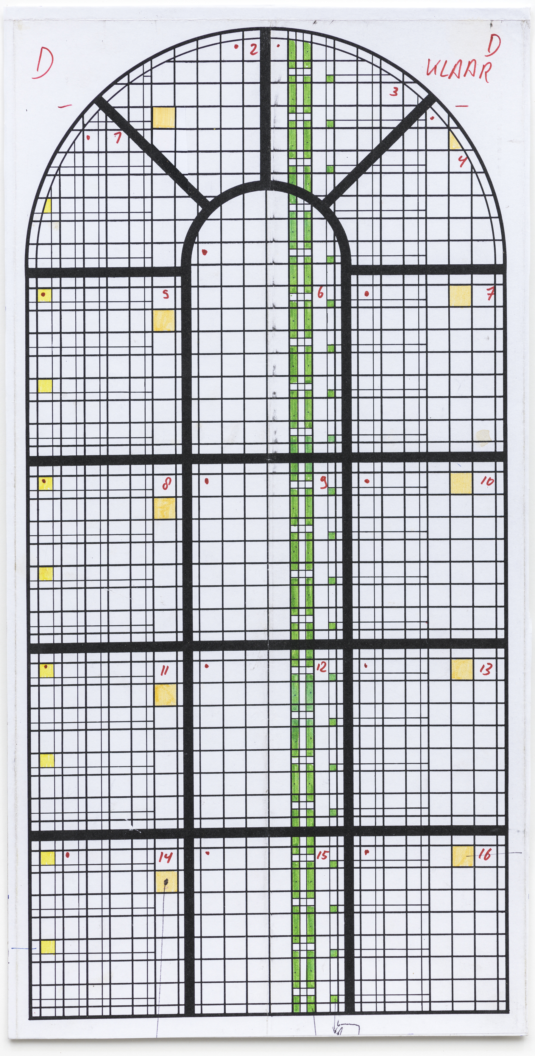 Titel | Defintief ontwerp voor een glas in lood raam voor de Sint Gertrudiskerk te Wijlre ; schip zuidzijde |